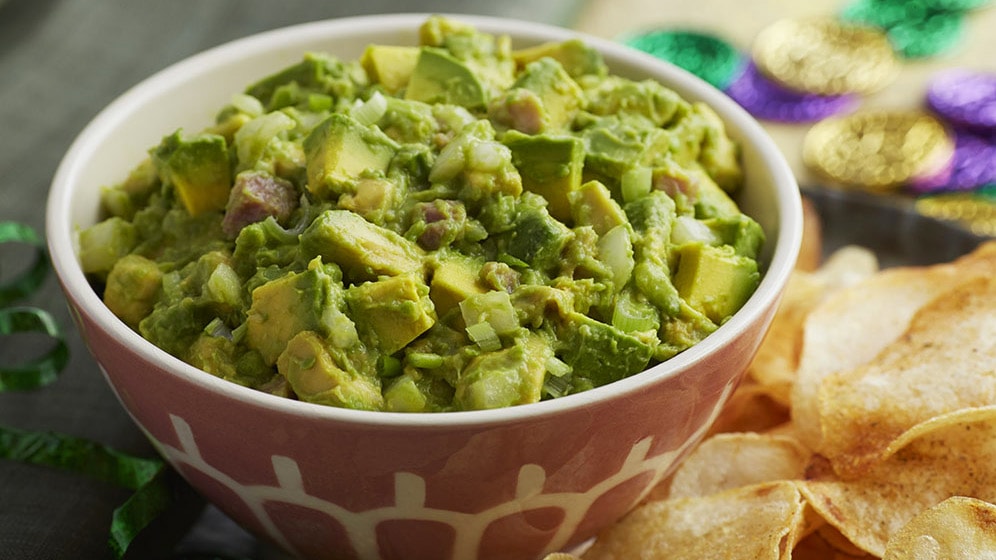 Chef Susan Spicer created this New Orleans-style guacamole featuring pickled onions and Tasso ham.