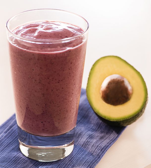 California Avocados and frozen fruit or veggies make delicious, creamy smoothies in an instant. This berry smoothie provides a good source of protein, iron and potassium (10% DV) along with 15% DV vitamins A and D.