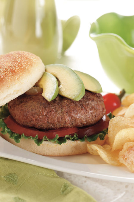 Mashed avocado, chile peppers, and onions enliven these moist, lightly spiced hamburgers. They look pan-fried when cooked in a browning skillet.