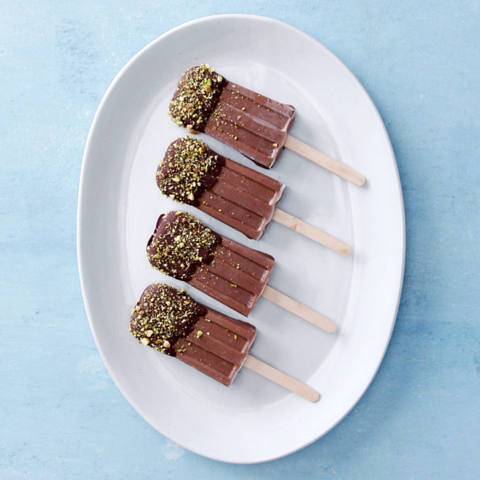 California Avocado, yogurt, simple syrup, chocolate and pistachios are a great combination for these frozen treats. But that’s not the end of the story, you get a good source of protein (14% DV), vitamin C, vitamin K (15% DV) and potassium (12% DV) along with an excellent source of fiber (32% DV) and iron.
