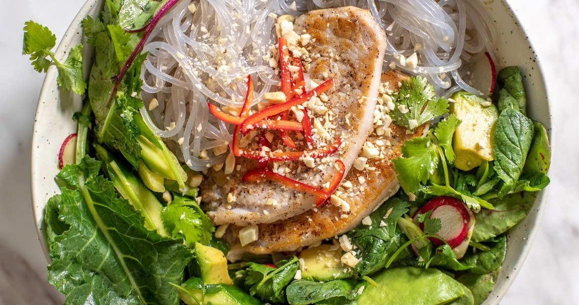 This California Avocado glass noodle salad with pork chops is an easy and vibrant Vietnamese-inspired salad that takes just 30 minutes to make!