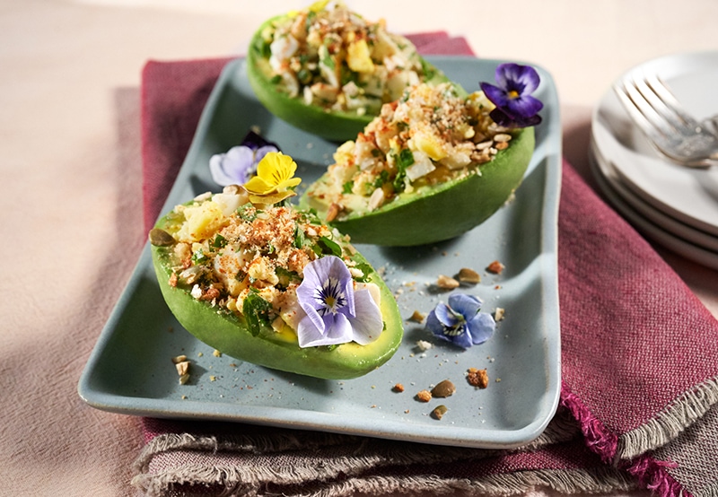 This recipe is a unique twist on a classic favorite; turning the famous avocado toast inside-out by serving the Fresh, California Avocado as the base and placing toasted breadcrumbs within. Enjoy this dish and it’s health benefits of an excellent source of dietary fiber (29% DV) and a good source of potassium (15% DV). Consuming foods rich in fiber may reduce the risk of heart disease, obesity, and type 2 diabetes. Additionally, a diet rich in potassium helps to offset some of the harmful effects that sodium has on blood pressure.