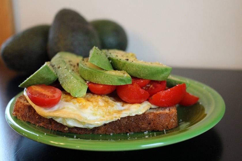 Fresh California Avocado and sliced tomatoes are the perfect accompaniments on this open-faced egg sandwich layered on whole grain toast. The avocado and tomato together act as a nutrient booster by enabling the body to absorb more fat-soluble nutrients, such as alpha- and beta-carotene as well as lutein, in foods that are eaten with the fruit. This powerhouse is an excellent source of protein, vitamins A, C, D and k, along with iron and dietary fiber. You can make this protein-rich and vitamin-packed Eggie-Cado sandwich in less than 3 minutes. Ready-set- go-eat.