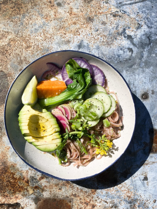 This creative take on a Thai-inspired rice noodle bowl, made with fresh spring vegetables and locally grown and sustainably farmed California Avocados, is sweet with a little bit of heat!