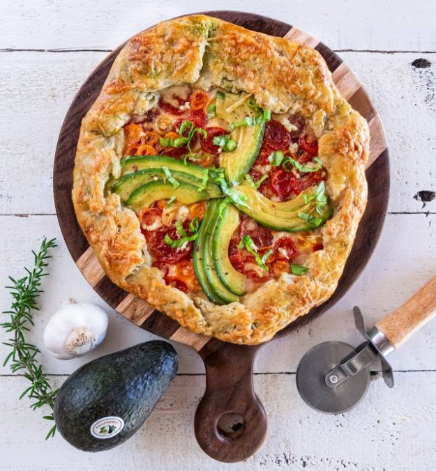This baked avocado galette combines all of the best flavors of summer, including California Avocados, to create a colorful and delicious dish.