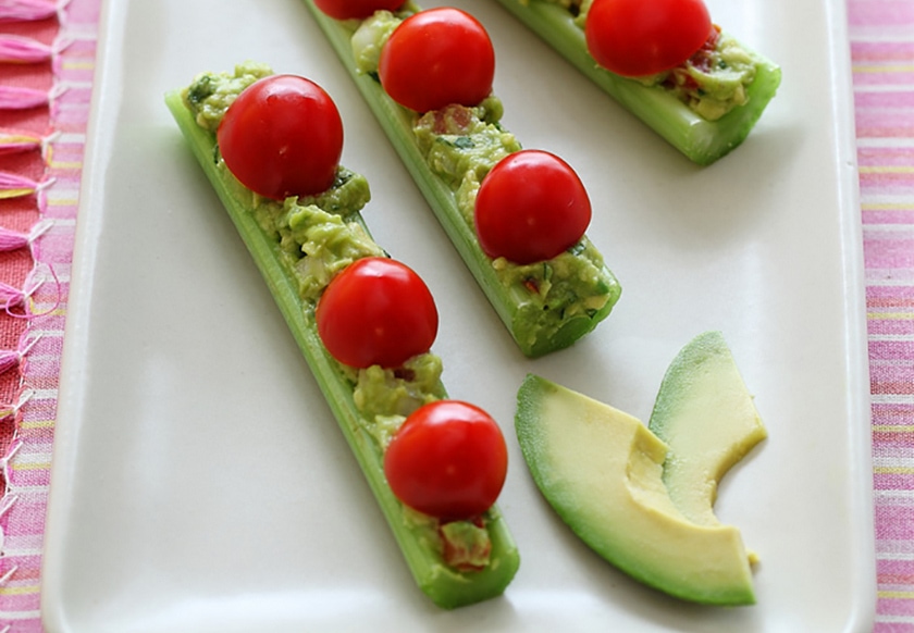 - Carefully fill the hollow in each celery stalk with the guacamole.