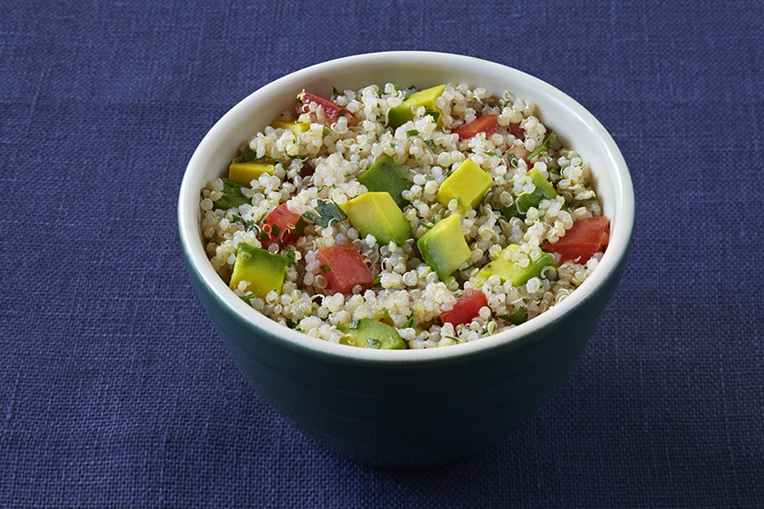 This plant-based, gluten-free dish is hearty enough for a light lunch in itself, or pairs deliciously with your favorite protein, sandwich, or on your party buffet. While quinoa is considered an ancient grain, it is technically a seed, and is a complete protein. California Avocados are the perfect partner, having nearly 20 vitamins, minerals and beneficial nutrients, making them a tasty choice for a delicious and healthy menu. Over 75% of the fat in avocados is unsaturated (mono- and polyunsaturated), making them a great substitute for foods high in saturated fat.