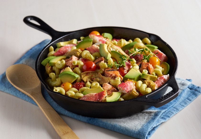 A celebration of Pacific flavors, from Alaska to California, this creamy pasta dish is dairy-free. It is also delicious made with different types of pasta and seasonally available seafood. This recipe is approved for the Fruits & Veggies – More Matters designation and has an excellent source of three nutrients listed as an areas of health concern in the USDA Dietary Guidelines for Americans; dietary fiber, potassium and vitamin D. Other nutritional benefits include an excellent source of iron, folate, vitamins B12, C, K and A.