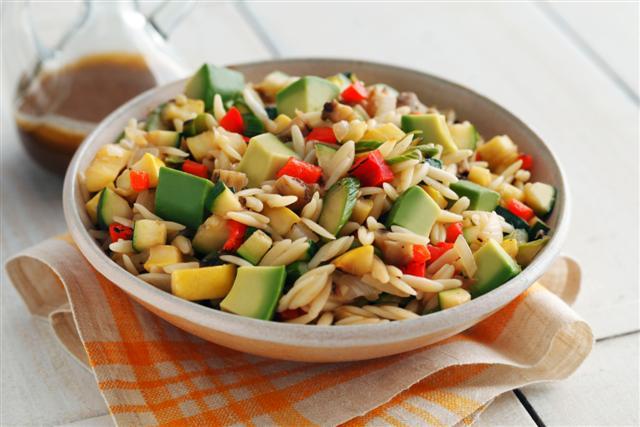 This California Avocado grower summer salad combines red bell pepper, zucchini, yellow squash, Japanese eggplant, asparagus, orzo and California Avocados with balsamic vinaigretteto create a delicious low sodium salad your family will love.