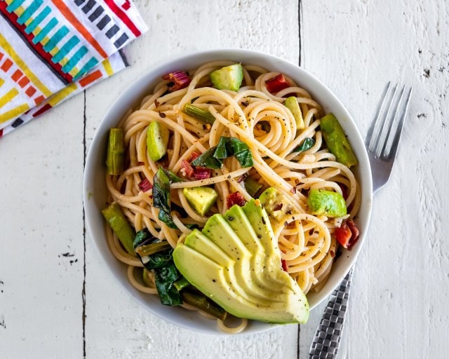 This pasta recipe is filled with colorful and delicious seasonal produce and California Avocados!
