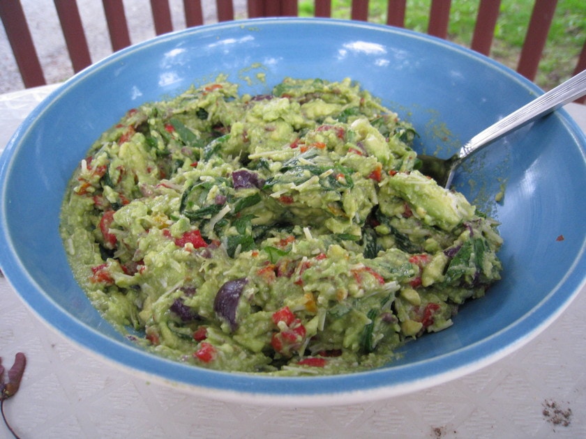 An awesome Tuscan twist on guacamole featuring lemons, spinach, olives, roasted red peppers, sundried tomatoes, pecorino romano cheese, and of course, California Avocados! Something a little different for a Cinco de Mayo party. Goes great with tortilla chips, or spread on toasted Italian bread rounds or with breadsticks.