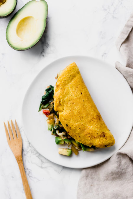 This vegan omelette is a tasty, high protein recipe to start your day off with! Stuff this omelette with leftover veggies and fresh, California Avocados.
